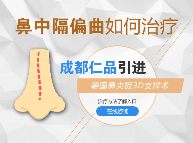 成都鼻中隔偏曲的四大危害?鼻中隔偏曲是一种比较常见的鼻部疾病,其对于患者的影响也是比较大的,会造成患者持续性的鼻塞,鼻出血等情况,并且还会影响到患者的五官,导致患者脸部出现变形,影响到患者的美观。因此,对于鼻中隔偏曲,广大患者朋友一定要重视起来。但是,现在仍然有许多人对于鼻中隔偏曲不以为意,对于鼻中隔偏曲的危害还是不够了解,下面,我们就请成都仁品医生来给大家详细介绍一下:鼻中隔偏曲的危害有哪些?希望能够帮助到患者朋友。